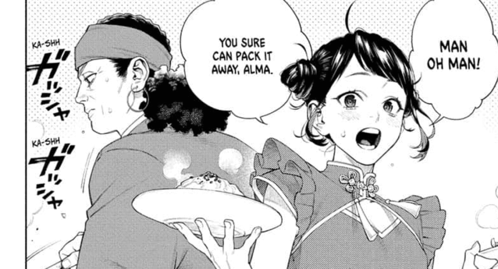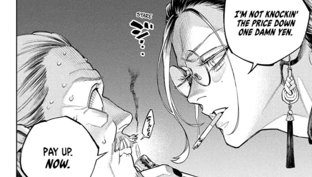 Gokurakugai Chapter 30 never leaves the dark and violent world of the working-class district where Tao and Alma are troubleshooters. Alma is an excellent fighter, as she demonstrates her fighting abilities and will despite her lack of Tao on her side in this chapter.
