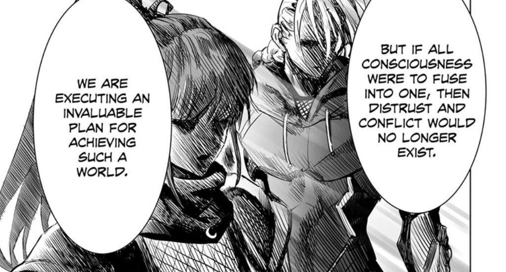 Genos is also on the move, fighting the antagonists and equipping himself with new components taken off the slain opponents. The last part of the chapter is the establishment of escalating threats and the complicated relationships between heroes, villains, and monsters that will later continue to bring the series its balance of humor, action, and emotional scenes.