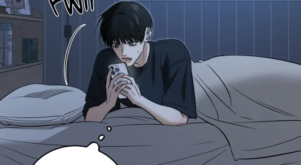 Joohyun is torn between his thoughts on love and romance and the reality of his attraction toward Seojun. Throughout the chapter, the author grapples with his emotions, desiring to remain faithful to his idea of the meaningfulness of his first relationship and being attracted to the beauty and personality of Seojun. These inner struggles produce emotional scenes demonstrating the weakness of Joohyun and his need for something real.