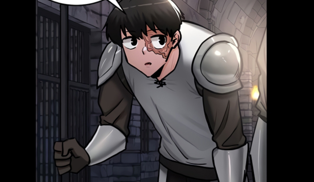 The starting point in the chapter shows the warrior engaged in an intense combat situation. The male protagonist has spent time developing his abilities and steadfastness before meeting an opponent who might have been his former life boss. The character demonstrates advancement through his fighting expertise combined with his analytical thinking in this moment to demonstrate his growth since the first chapters.