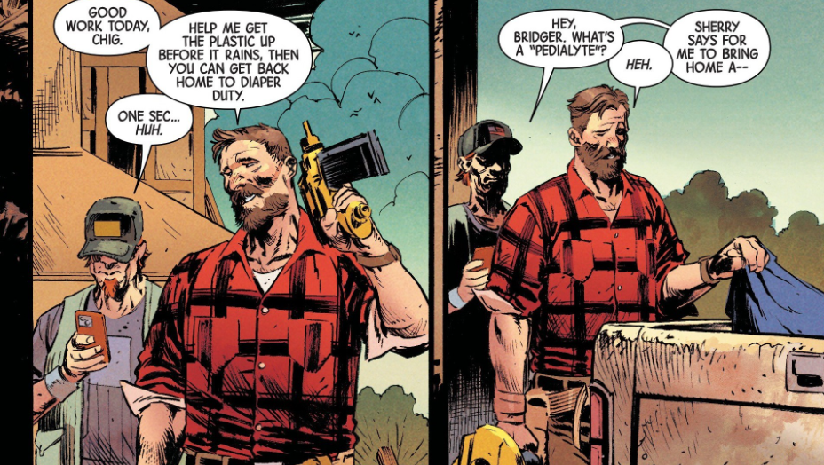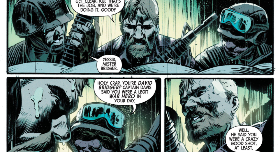 The story opens with evacuation alarms blaring as soldiers, led by war hero David Bridger, brace for what they think is the regular Hulk. Bridger, a haunted construction worker turned reluctant leader, warns young troops that combat heroes are just survivors helping buddies stay alive. The Infernal Hulk arrives and obliterates them effortlessly, corrupting some into twisted gamma monsters instead of killing outright.